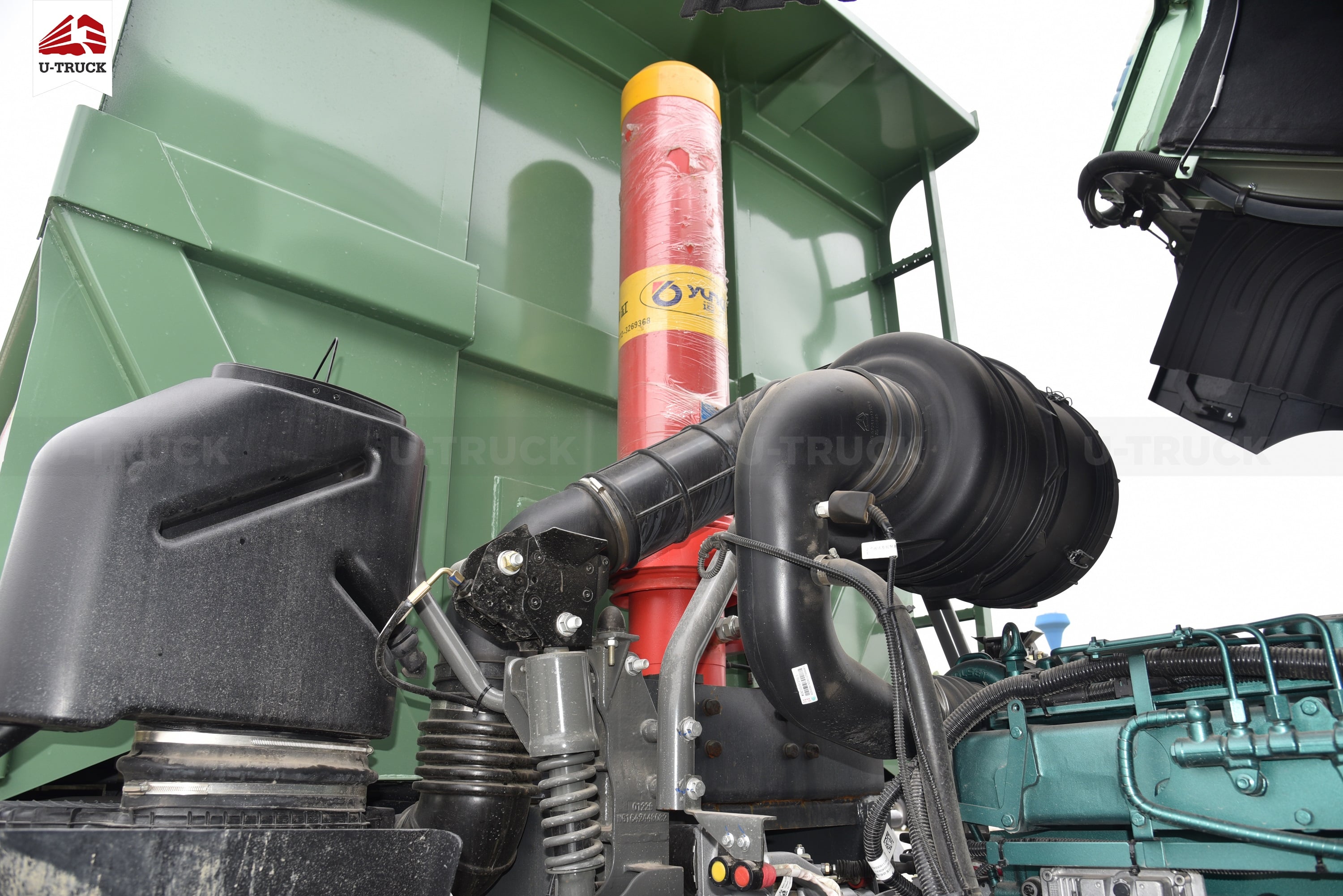 Xe ben V7X 380 8X4 thùng đúc được trang bị thêm bộ lọc ướt cho khí nạp trước khi vào động cơ. Bầu lọc ướt mang lại nhiều hiệu quả về hiệu suất hoạt động của động cơ xe và môi trường như: