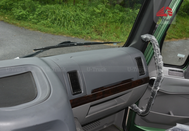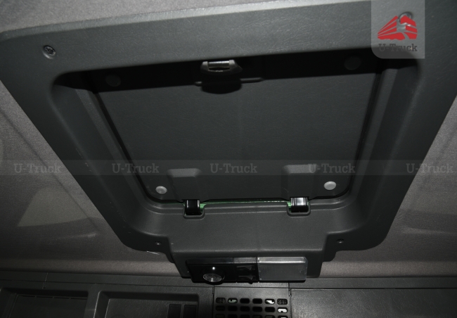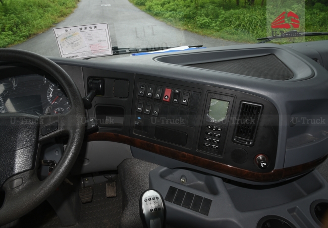 Khoang nội thất xe ben được thiết kế rộng rãi, hiện đại với tông màu ghi xám và tầm nhìn mở rộng, giúp người lái dễ dàng quan sát hơn trong quá trình vận hành. Bảng điều khiển trung tâm được bố trí thông minh, khoa học với đầy đủ các nút tính năng như phanh cup pô, ga tự động Cruise control, cài cầu, cái cứng và công tắc cài ben và một số nút công tắc thông thường trên một chiếc xe tải ben.