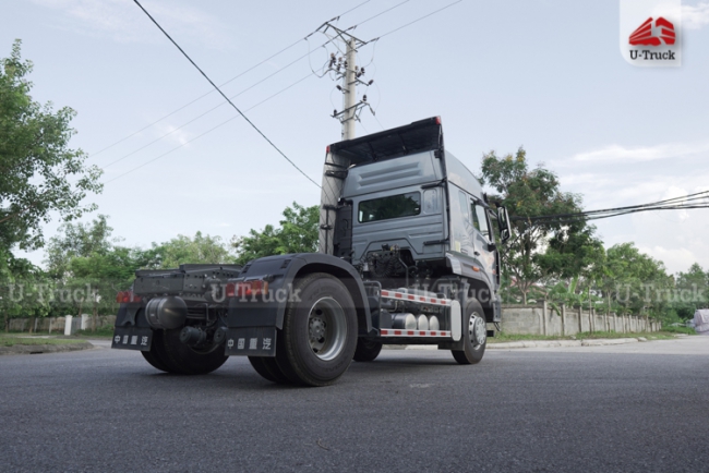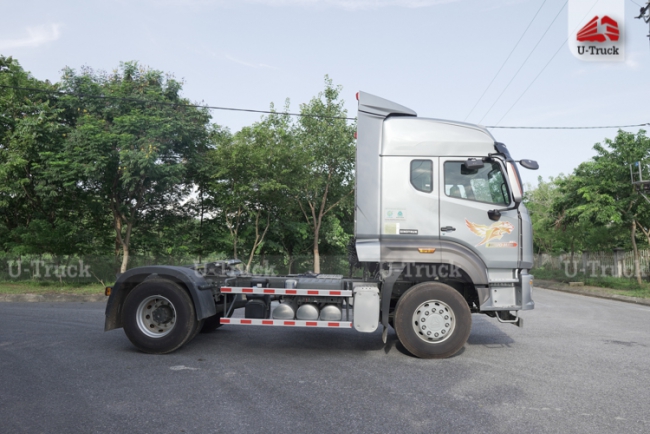 Lốp 12R22.5 bố thép, loại 18Pr 3 tam giác. Thùng nhiên liệu hợp kim nhôm, dung tích 400L. Sát xi 1 lớp chắc chắn, sử dụng thanh giằng chữ V. Có trang bị cơ cấu chốt kéo phía sau hệ thống sắt xi.