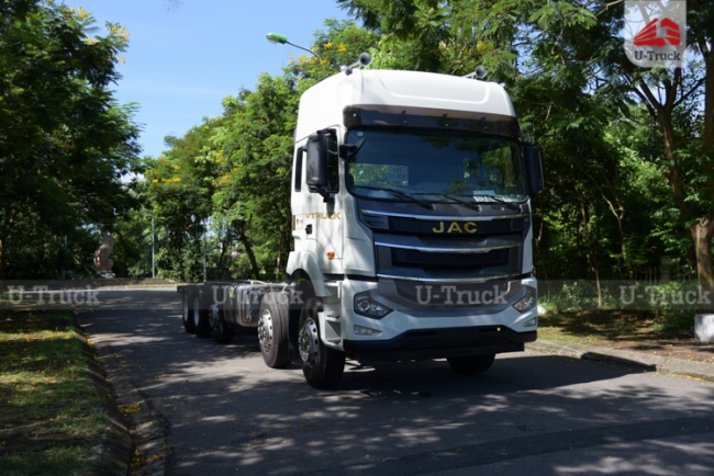 Xe tải A5 10x4 sát xi cầu láp là sản phẩm nằm trong bộ sưu tập mới nhất của JAC, thuộc phân khúc xe hạng nặng tải trọng 22 tấn được UTRUCK nhập khẩu nguyên chiếc 100% và phân phối tại thị trường Việt Nam. Với ngoại quan cabin A5 mới, động lực khỏe, cấu hình siêu tiết kiệm nhiên liệu, xe tải Jac A5 10x4 phục vụ đa dạng hóa nhu cầu vận tải, kéo mọi loại hàng hóa, đặc biệt là vận tải đường trường, đường dài siêu tốt, giúp khách hàng có hiệu quả đầu tư sản phẩm cao nhất và chi phí phù hợp nhất.
