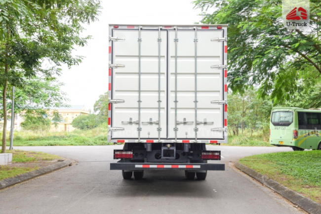 - Hệ thống cánh gồm: 06 cánh cửa sườn và 02 cánh mở phía sau thùng, các cửa đều có khóa và gioăng chống nước.
