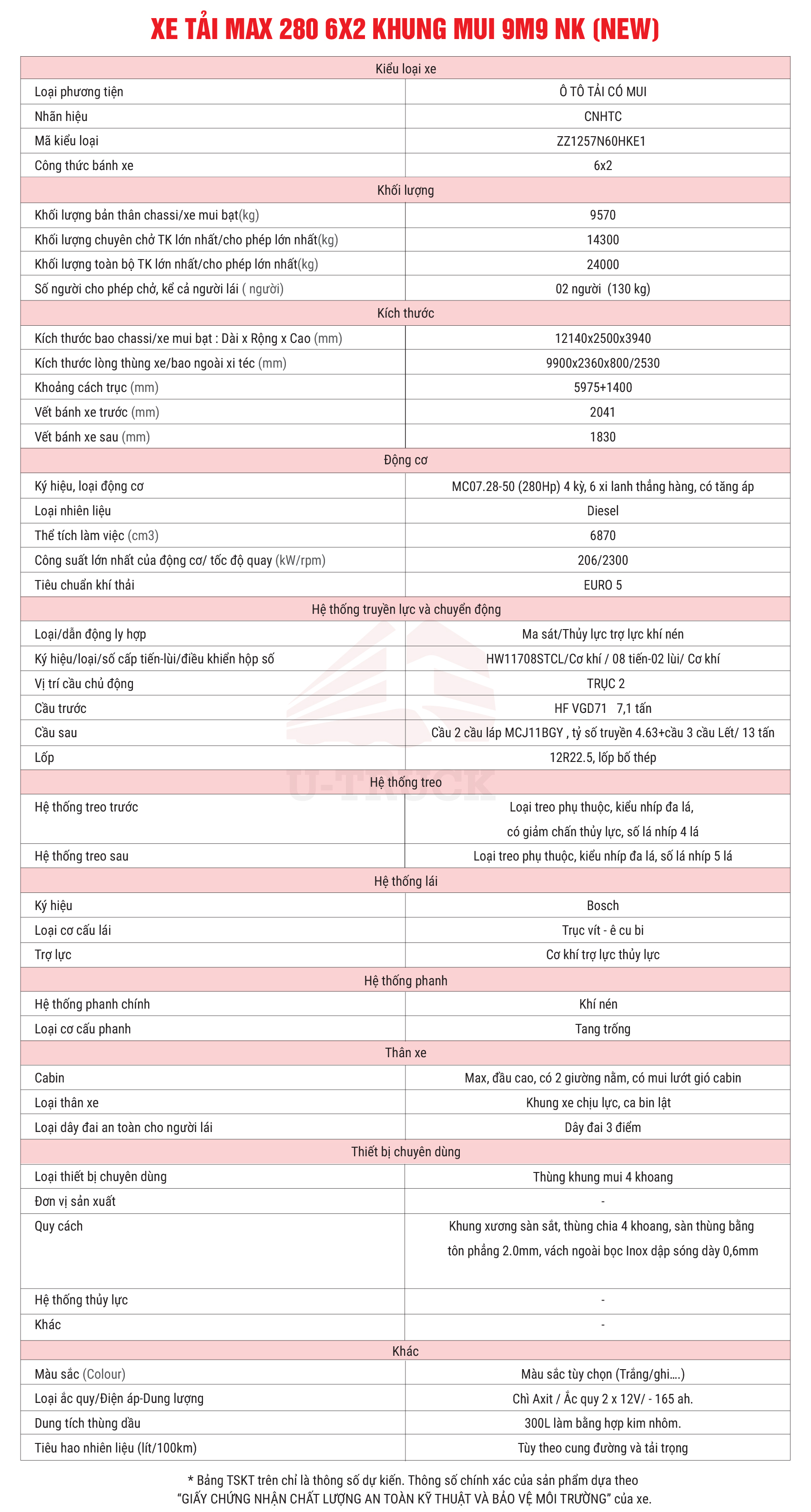 Ngoài các thông số kỹ thuật ấn tượng, XE TẢI MAX 280 6X2 KHUNG MUI NHẬP KHẨU 9M9 còn được trang bị: