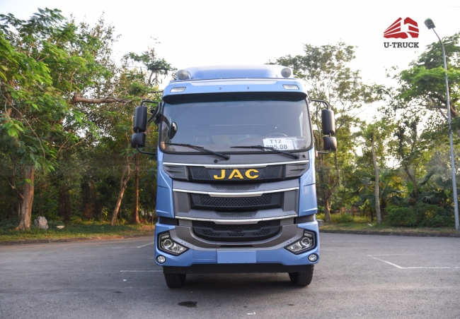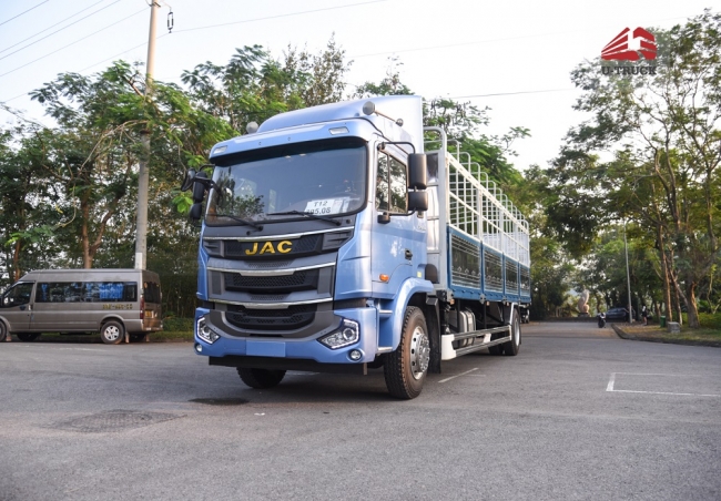 - Xe tải JAC 9 A5 4x2 mui bạt nâng bửng hông 8M2 sở hữu hệ thống 2 cầu với cầu trước có khả năng chịu tải 6.5 tấn, cầu sau là cầu láp có khả năng chịu tải 13 tấn.