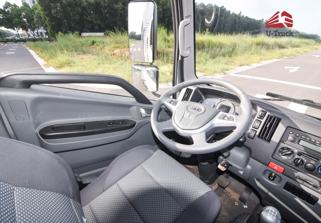 Nội thất xe tải JAC N350 thùng bạt 3T5 được thiết kế theo phong cách hiện đại, tiện nghi và thoải mái. Cabin xe được thiết kế vuông vức, tăng không gian bên trong khoang nội thất. Ghế ngồi được bọc da cao cấp, có thể điều chỉnh theo 4 hướng, giúp tài xế có thể ngồi thoải mái trong suốt hành trình. Vô lăng được bọc da cao cấp, tích hợp các nút điều khiển âm thanh và đàm thoại rảnh tay.