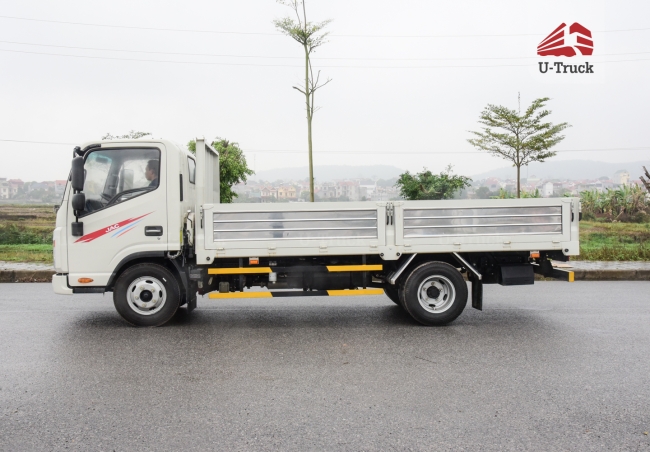 Thùng lửng này được thiết kế để đáp ứng nhu cầu vận chuyển hàng hóa đa dạng và kích thước khác nhau. Khung xe được thiết kế cứng cáp và chịu lực, giúp đảm bảo sự ổn định và an toàn cho hàng hóa khi vận chuyển. Phía sau xe, cụm đèn hậu được thiết kế theo hình chữ L, cùng với đèn báo phanh trên cao giúp tăng khả năng nhận diện của xe khi di chuyển trong đêm tối.
